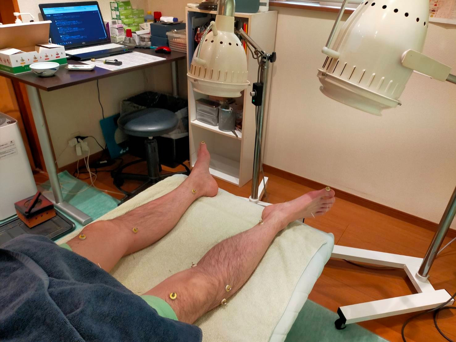鍼とお灸と箱灸を施術していきます。